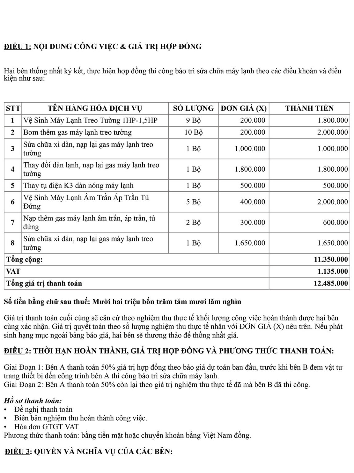 1. Hợp đồng bảo trì, sửa chữa định kỳ