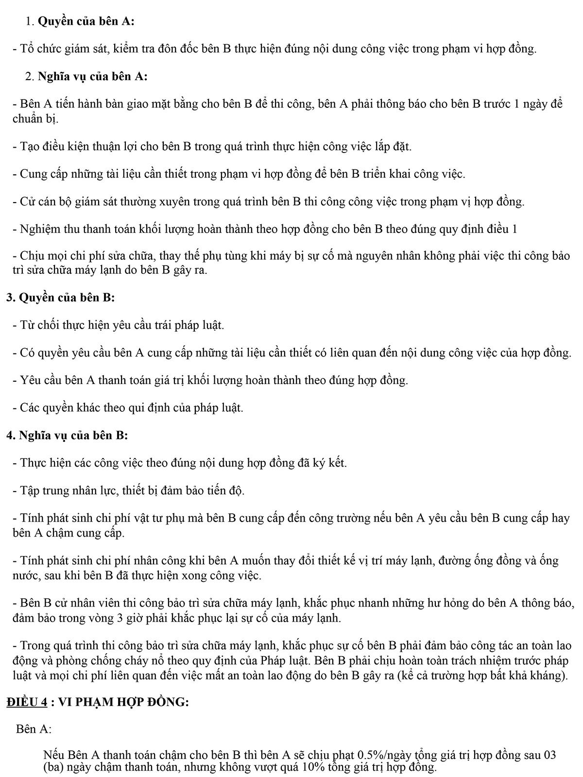 Mẫu hợp đồng bảo trì máy lạnh đã được điện lạnh Sapho thực hiện