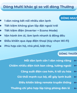 Máy lạnh multi 1 nóng 3 lạnh là máy điều hòa không khí với máy nén đơn (dàn nóng đơn) có thể kết nối với nhiều dàn lạnh. Hệ thống hoàn hảo dành cho các loại nhà nhỏ với không gian lắp đặt dàn nóng hạn chế như chung cư, trả lại không gian ban công cho người sử dụng. Bằng cách giảm số lượng dàn nóng, hệ thống điều hòa không khí Multi cũng góp phần làm giảm độ ồn cùng với việc đi dây điện quá nhiều và nhiệt thải tích tụ gây ra hiện tượng quẩn gió cho hệ thống.