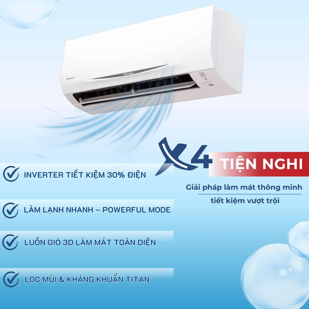 Máy nén của Daikin được phát triển và sản xuất chính hãng có thể tiết kiệm 30% điện năng so với model không inverter.