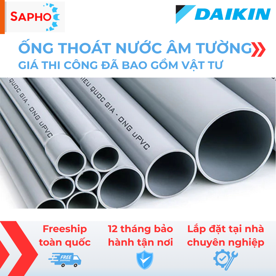 Thi công ống nước thoát âm tường (đã bao gồm vật tư phụ như Co Tê, Lơ, công cắt đục, trám trét đi âm tường,…)